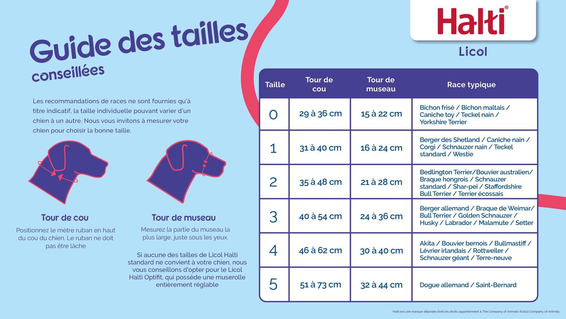 Les chiens débordent d’énergie et haleter les aide à réguler leur température pendant qu’ils explorent. Les Licols Halti sont proposés en plusieurs tailles pour s’adapter à chaque chien et laisser l’animal libre de haleter, manger et boire normalement.